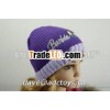 100% Wool Purple Dobby Embroidery Flock Printing Cheap Fashion Girls Winter Jacquard Knitted Beanie